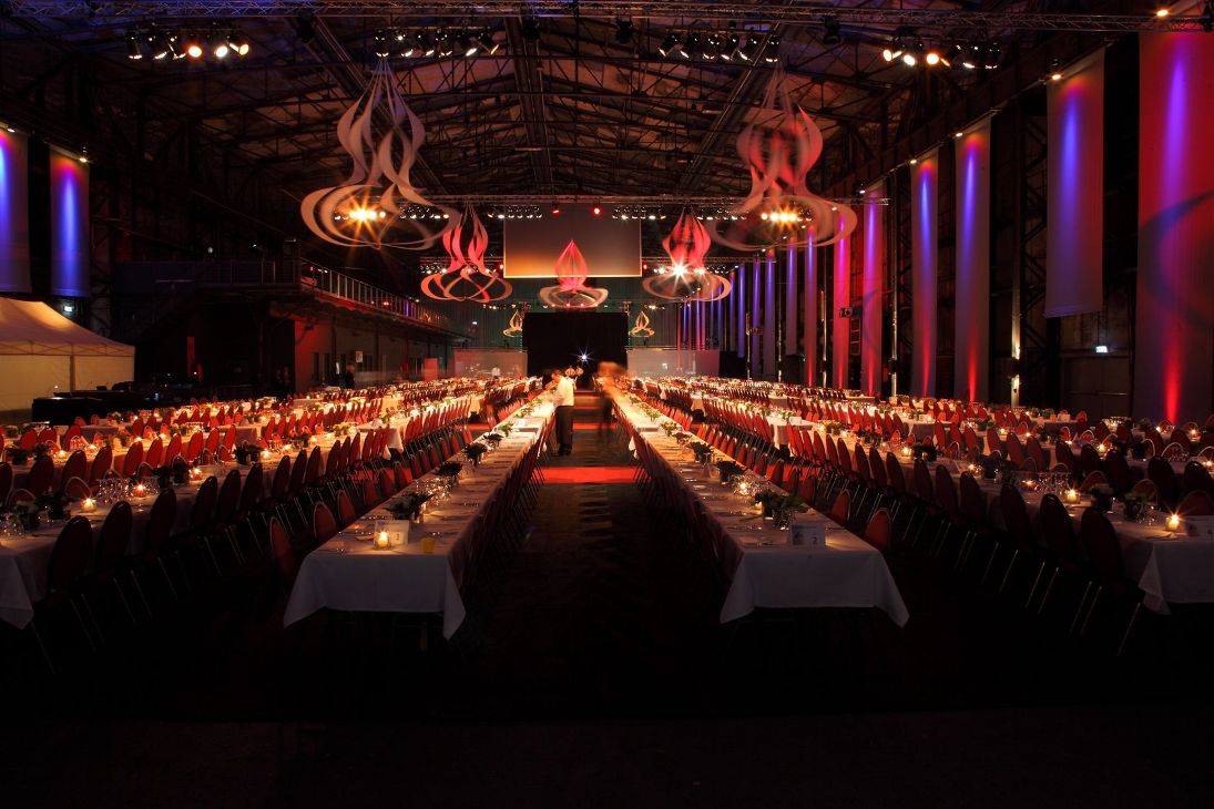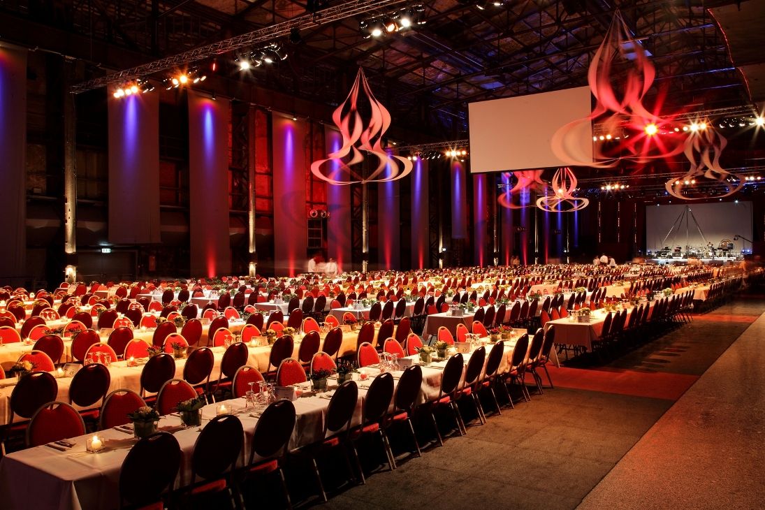 Nichts überlassen wir dem Zufall! Wochen dauert die Planung einer solchen Veranstaltung mit rund 1200 geladenen Gästen. Die gesamte Woche vor der Veranstaltung verbringen wir jeden Tag in der Location, um die sonst kahle Gebläsehalle in einen Gala-Saal zu verwandeln.
